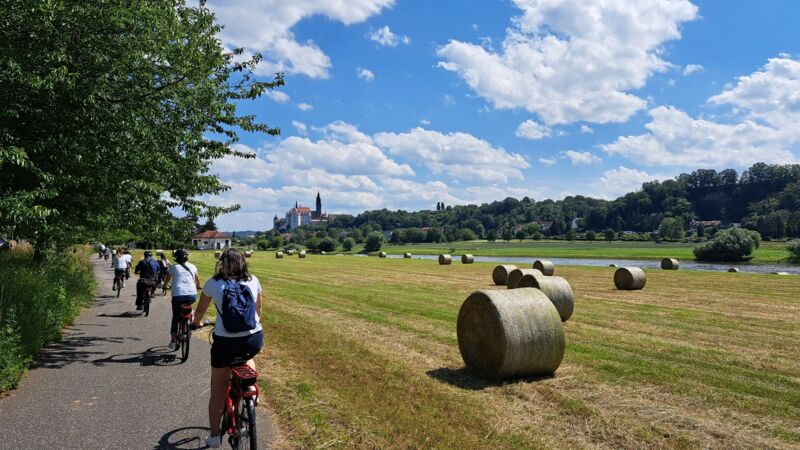 Anschließend ging es bei bestem Wetter auf die bereitstehenden Fahrräder (teils mit, teils ohne Strom). In der herrlichen Landschaft des Elbtals und mit Ausblick auf das historische Meißen waren die 27 km für niemanden ein echtes Hindernis.